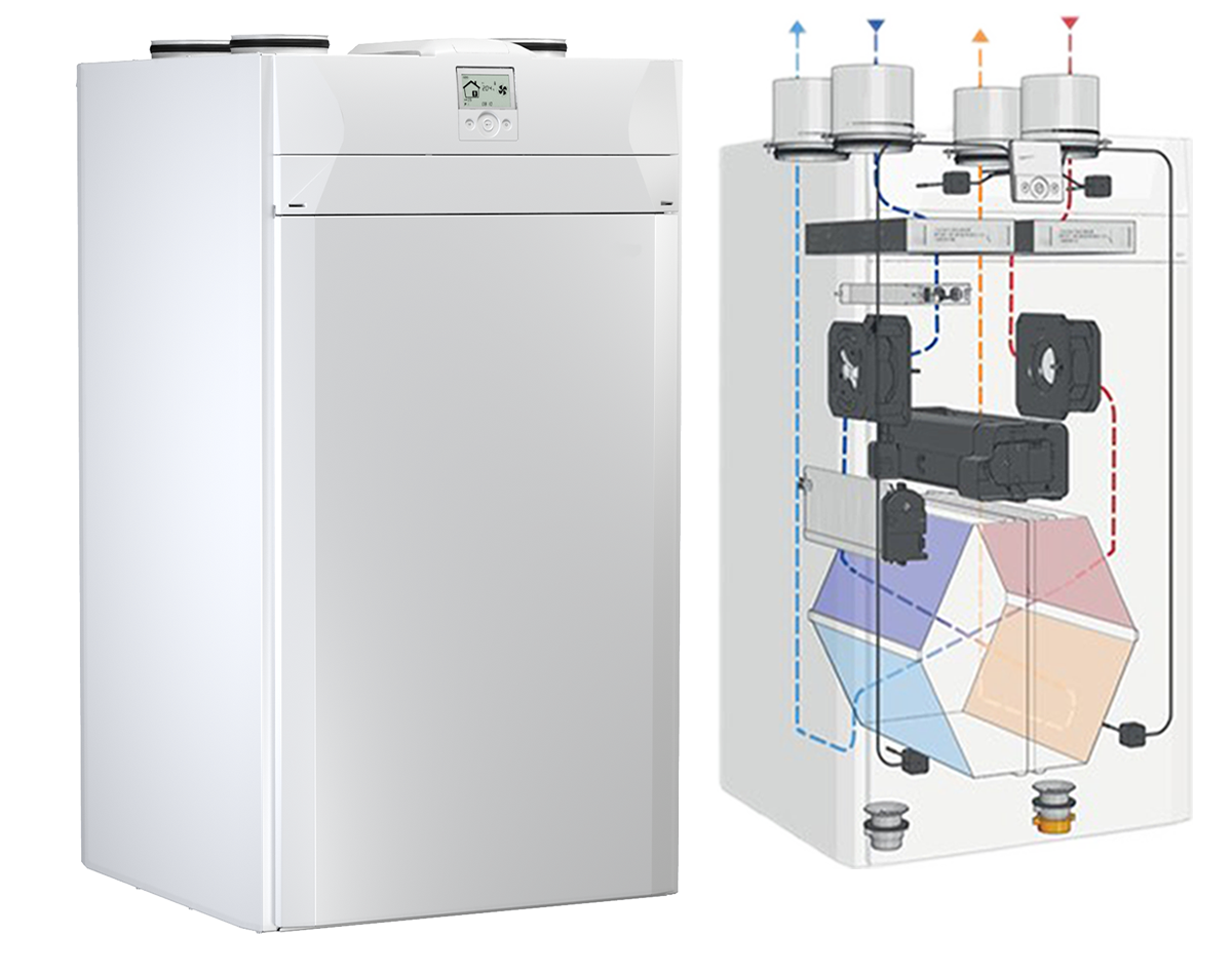 Mechanical ventilation and heat recovery systems extract stale air from wet rooms and supply fresh air to habitable rooms. The system incorporates a heat exchanger that enables heat from exhausted air to be transferred to fresh, filtered air and recovered back into the home.