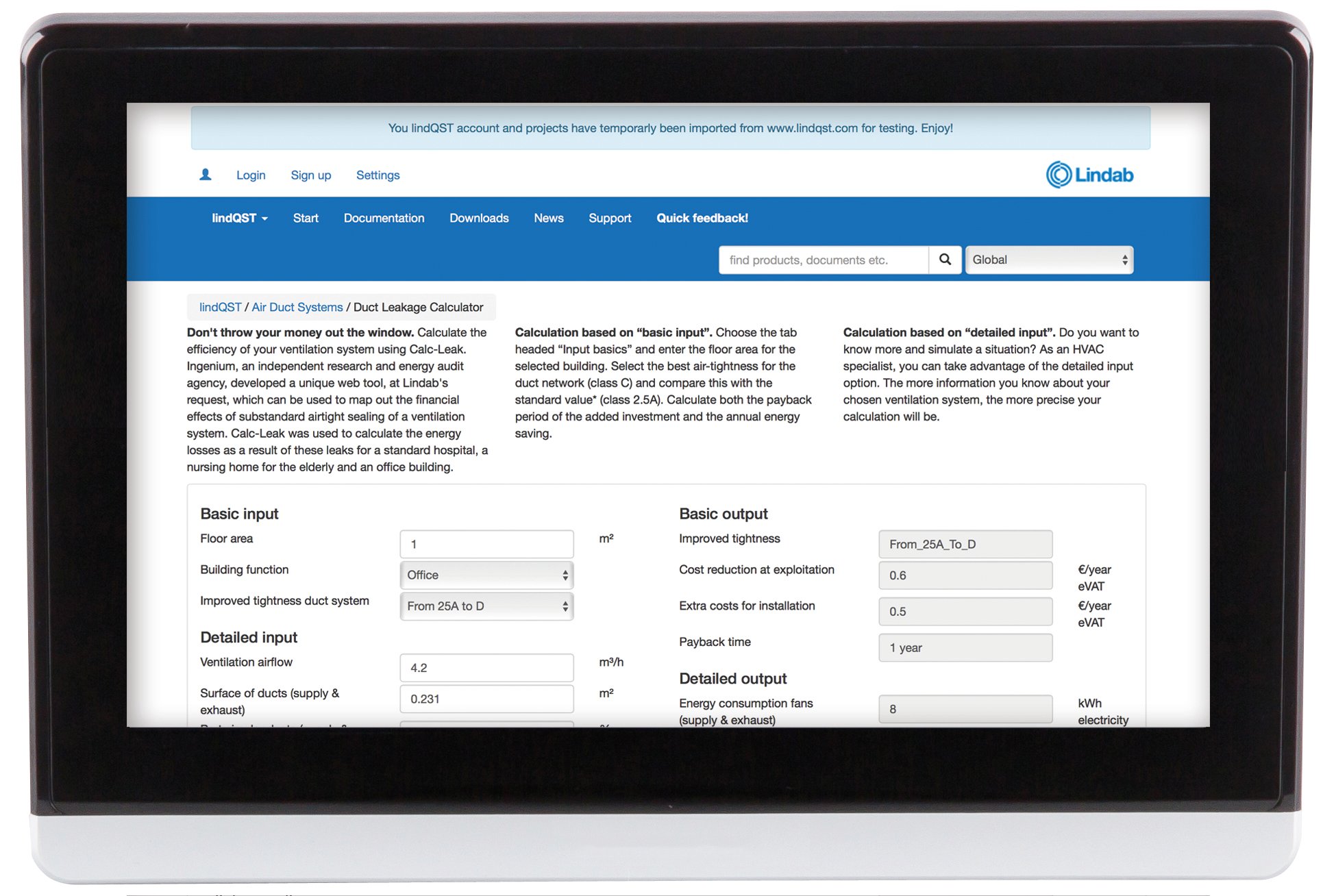 Lindab has developed the web tool Calc-Leak as part of our LindQST platform. Calculate both the payback period of the added investment and the annual energy saving.