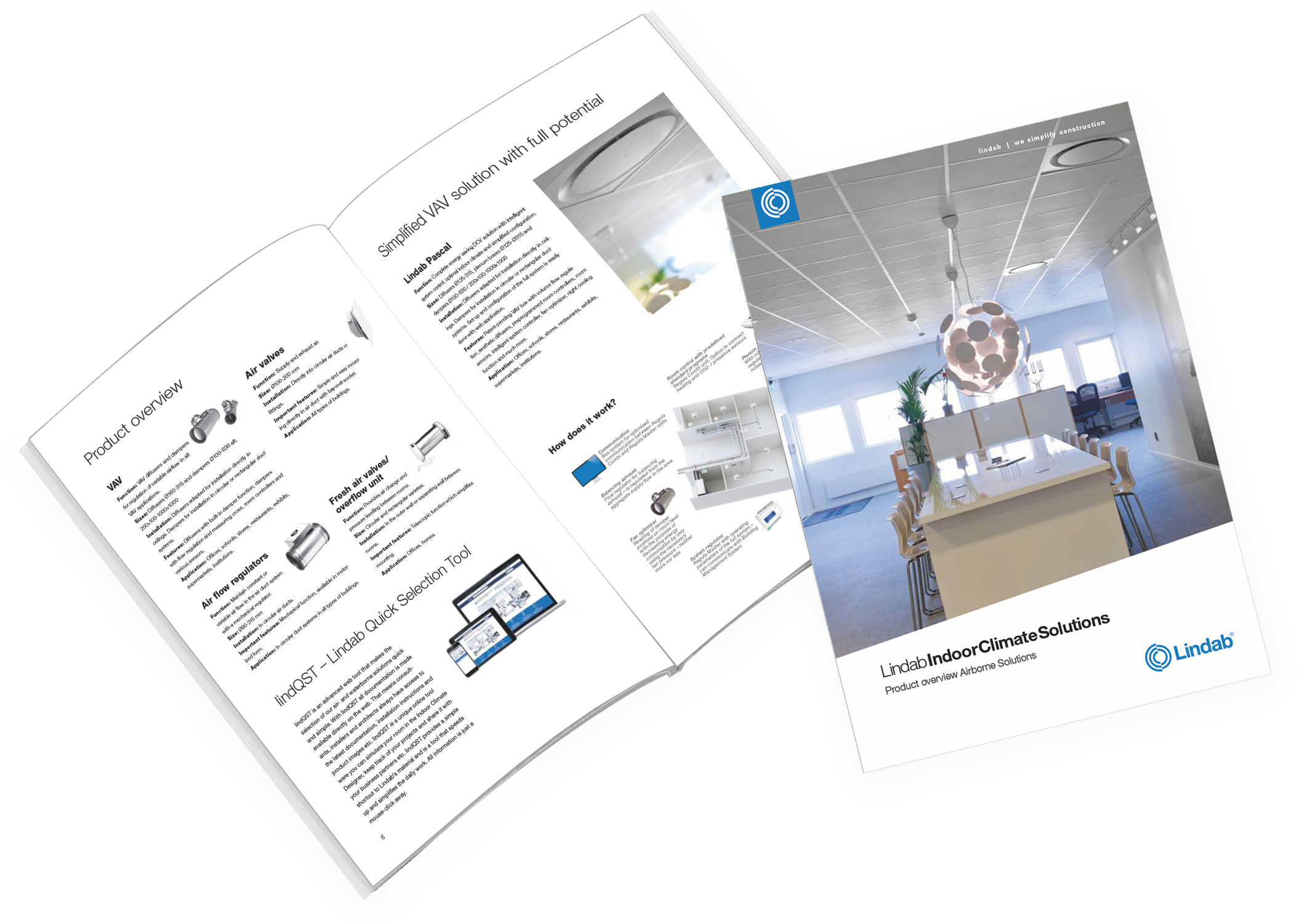 Our airborne climate systems use air to ventilate, cool or heat a room and have industry leading properties such as high energy efficiency and air quality as well as very low sound levels. We have everything from diffusers, grilles, VAV systems and displacement units for all applications.
