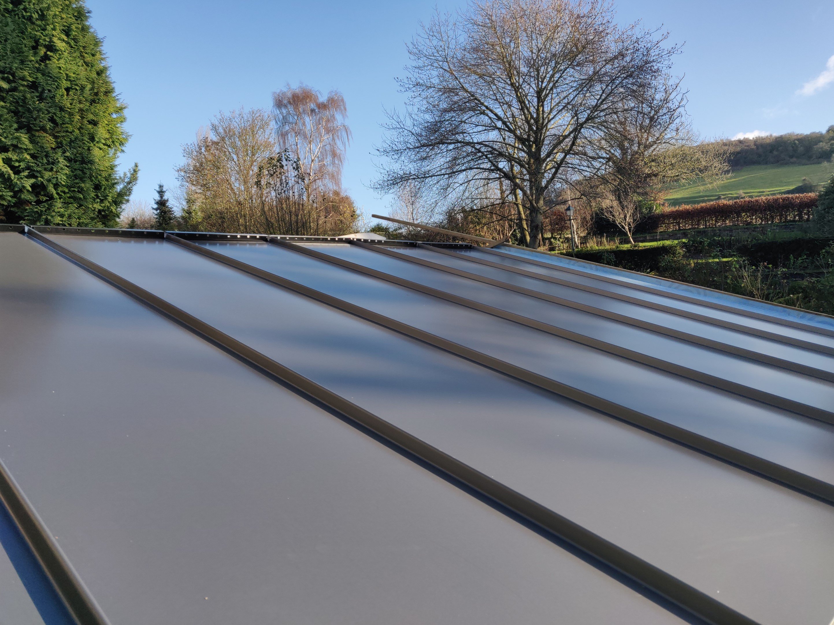 Richard was faced with the challenge of finding a roofing solution for his conservatory as the hardwood frame was deteriorating. He needed a solution that would meet many needs, including a low pitch and slender roof to maximise window height and insulation requirements.