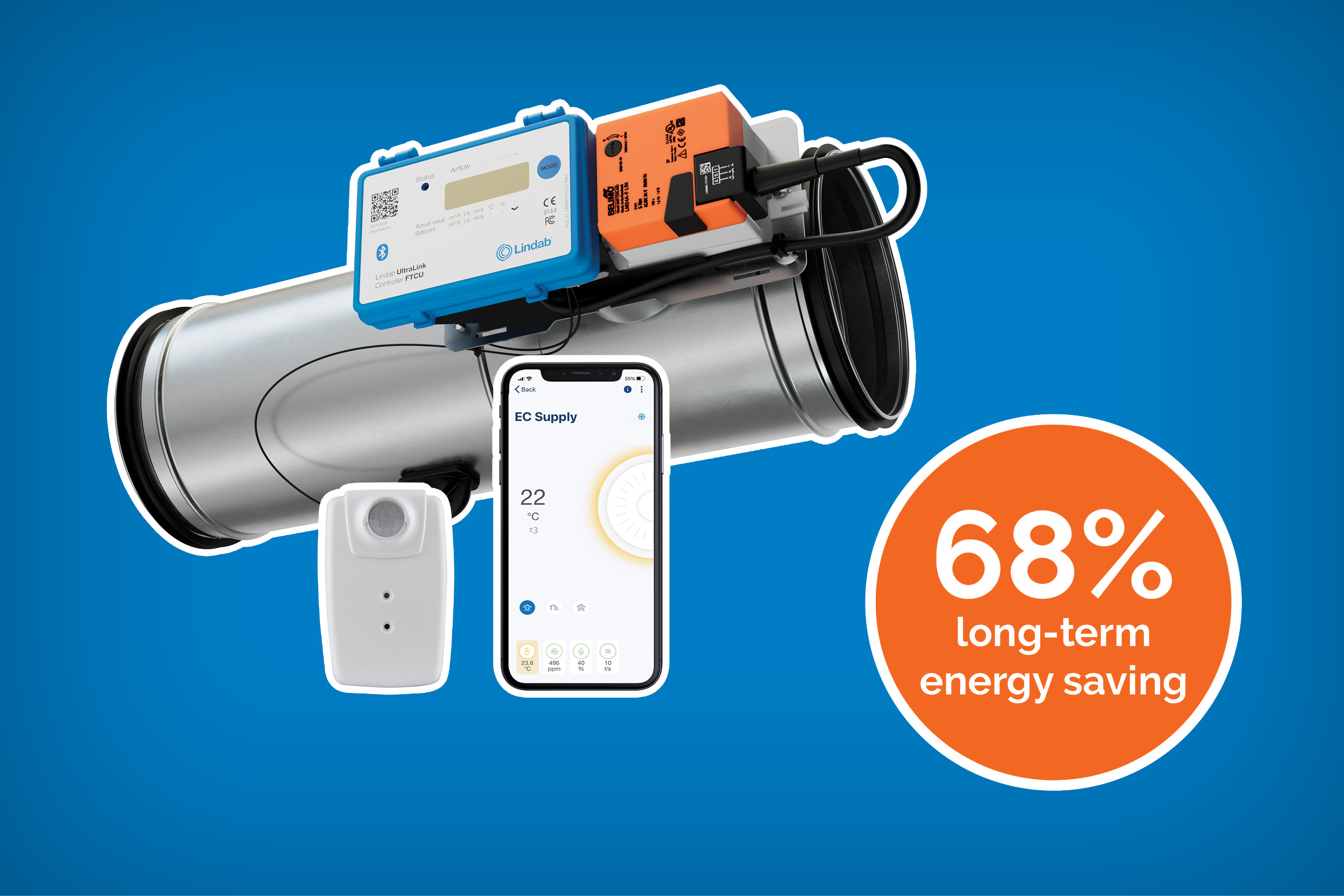 Constant air volume systems are real energy wasters. They don’t have to be though, a case study of ours show you can keep 98 percent of an existing ventilation system and still get an impressive 68 percent long-term energy saving. The room control system Ultra BT is the optimal circular solution, upgrading an old ventilation system to a demand controlled system that can be installed in one room at a time. No reconstruction of walls, no long-term renovation shut down. Perhaps the easiest way to save energy in an existing building!