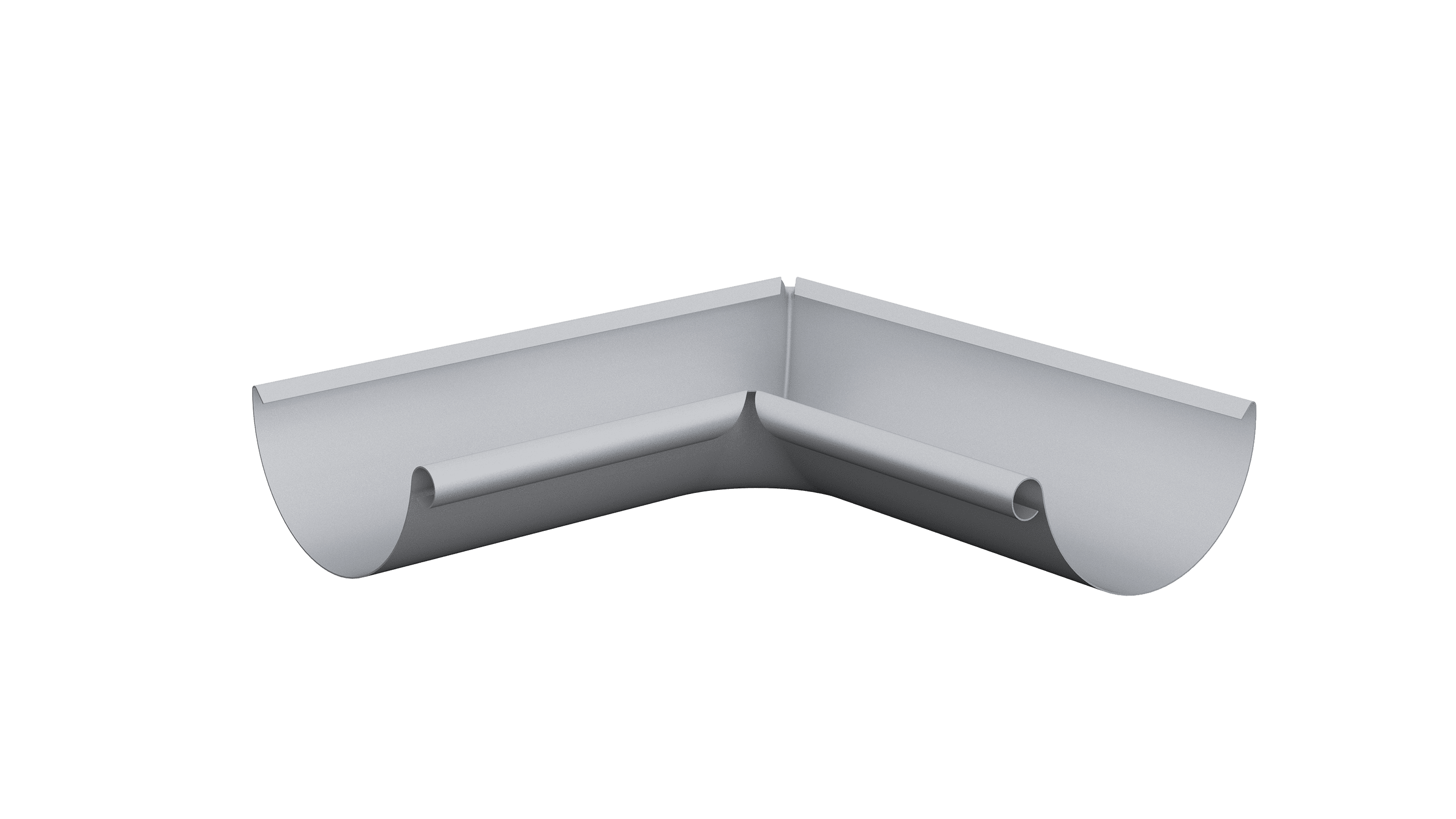 Gutter angle for half-round gutter at 90 or 135 degrees. It is pressed in one piece, not welded which eliminates the risk for leakage. This product is made of pre-coated galvanised steel with 0.6 mm thickness.