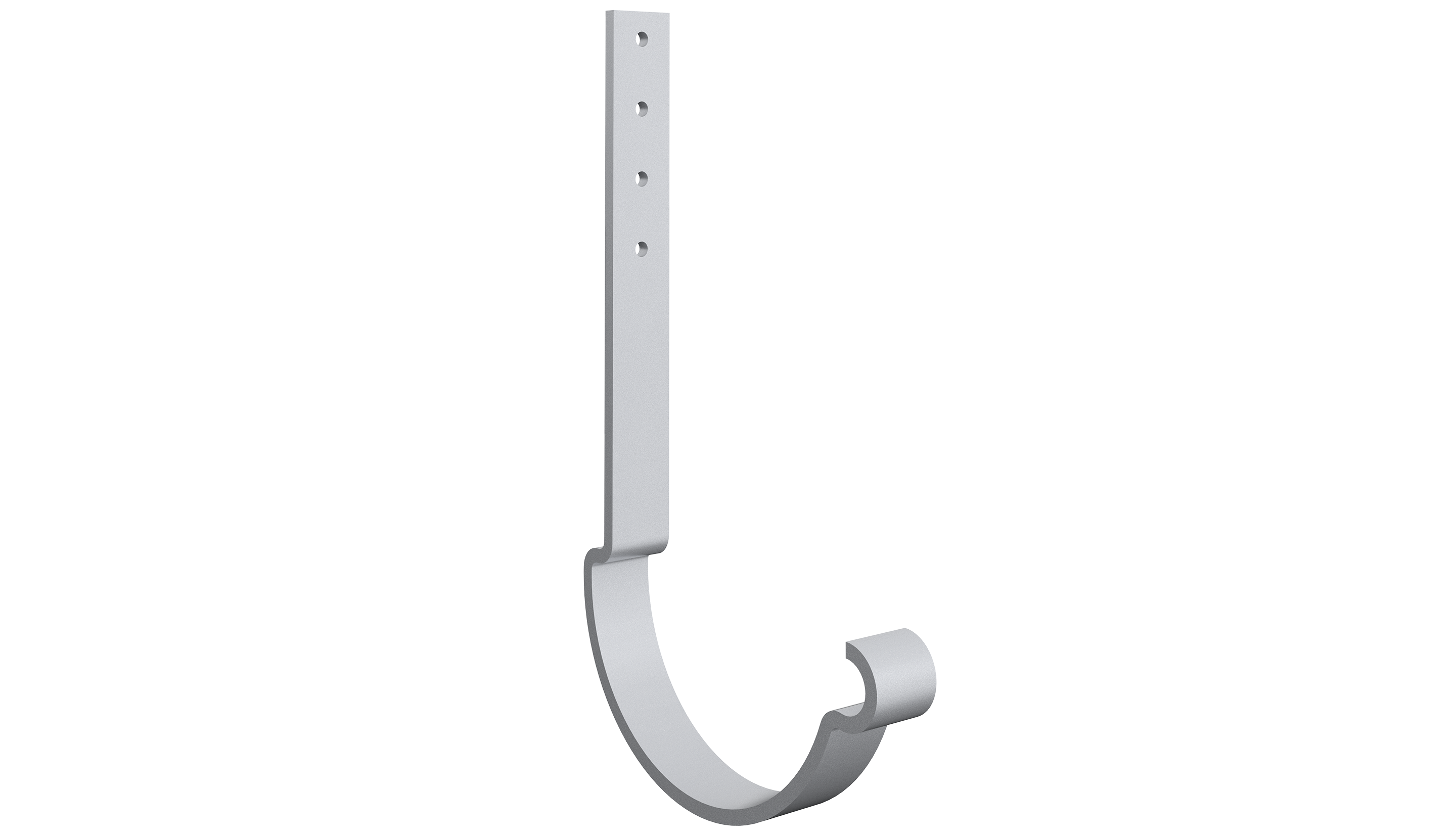 This gutter bracket is bent on the construction site to the correct angle to create the correct angle of fall for the gutter. This product is made of galvanised steel with 5 mm thickness.