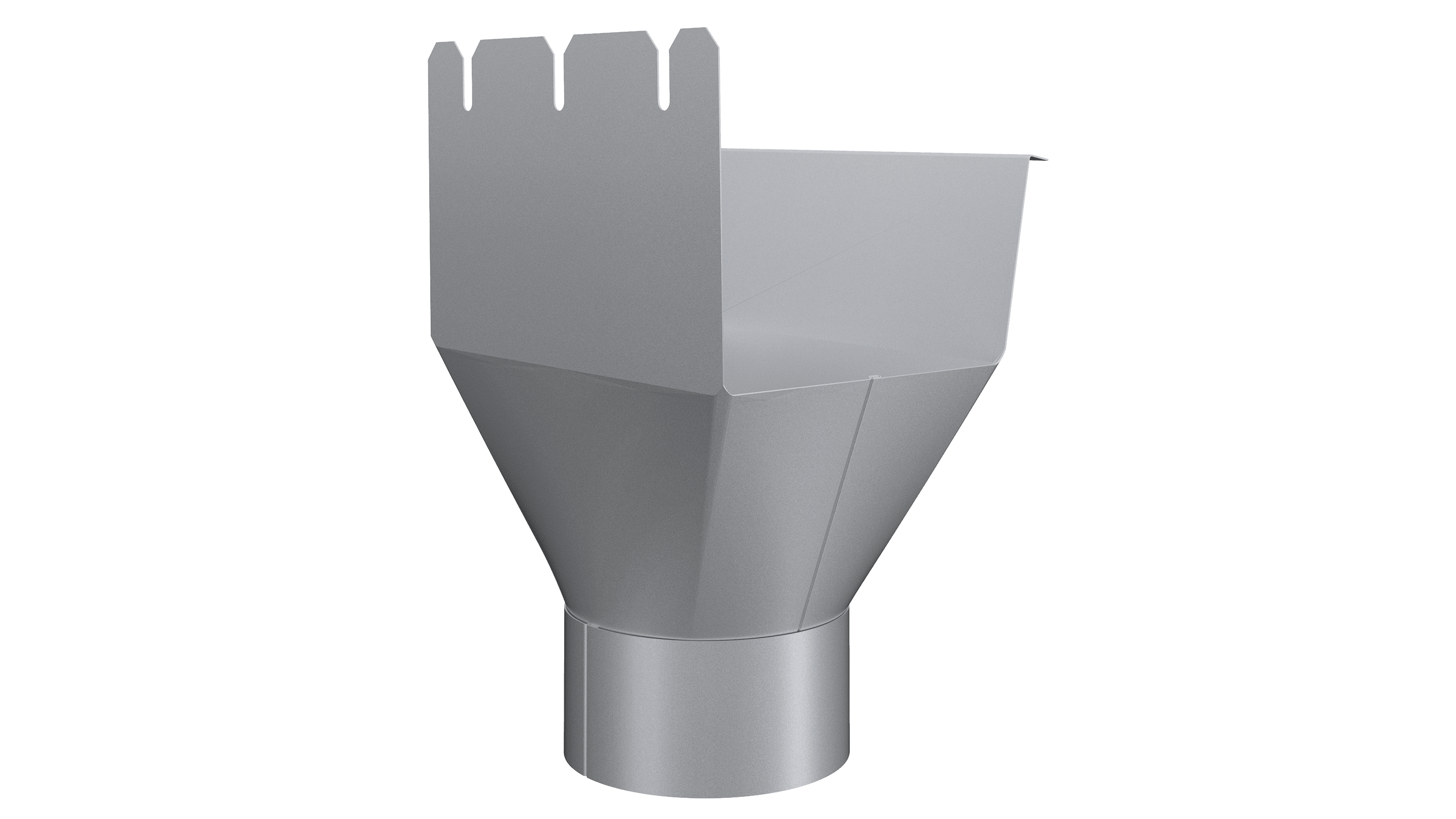 The rectangular gutter outlet has a perfect fit to the rectangular gutter, following its geometry closely. The installation with the hidden lock function in the bead of the gutter in the front and the back makes the installation both easy and nice looking.