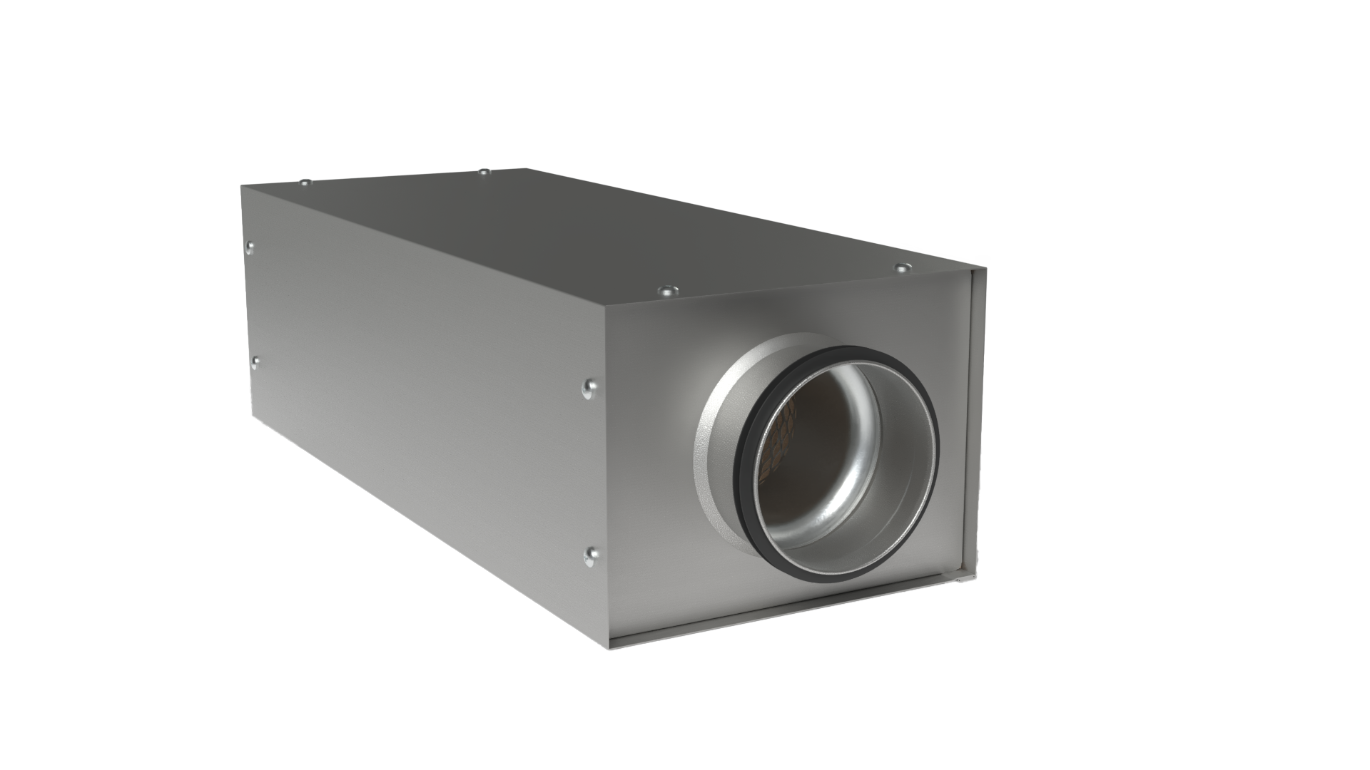 The casing is made from galvanised steel and an inner tube made of steel sheet. The inner tube is designed with small openings to withstand mechanical cleaning without interfering with insertion loss. For safety and durability, mineral wool is used as the acoustic media. A nonwoven cloth is inserted between the inner tube and the attenuation material, to prevent fibres from the insulation getting into the duct system.
