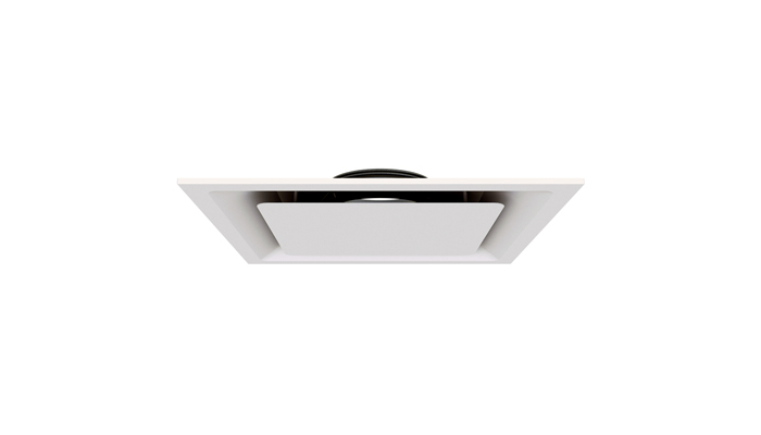 LKP is a flush-mounted square diffuser with a square unperforated face plate for installation in ceiling systems.