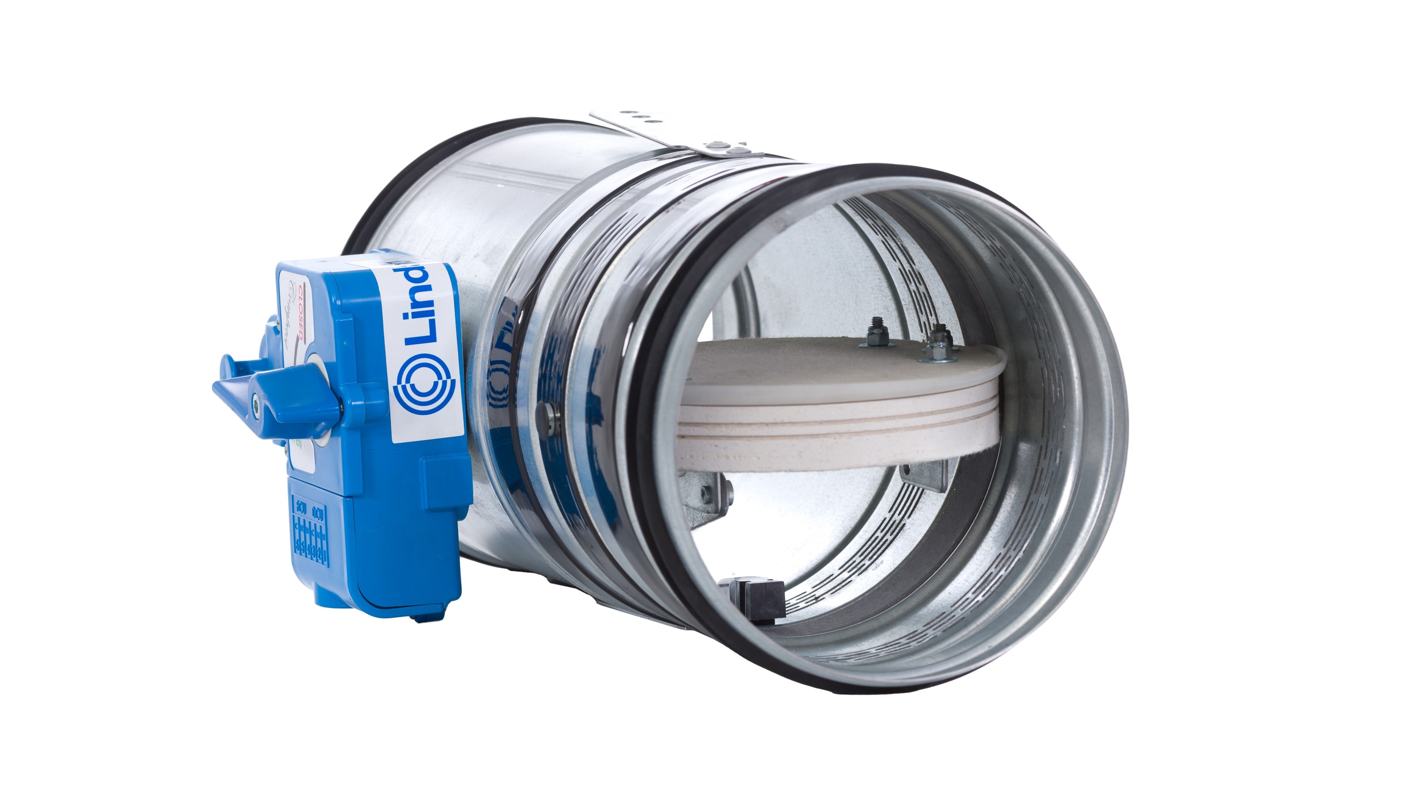 Circular fire damper for air duct system that penetrate fire resistance walls or floors. With 25 mm thick closing blade made from refractory material. Casing leakage performance class C according to Standard EN1751:2014 section C.3.