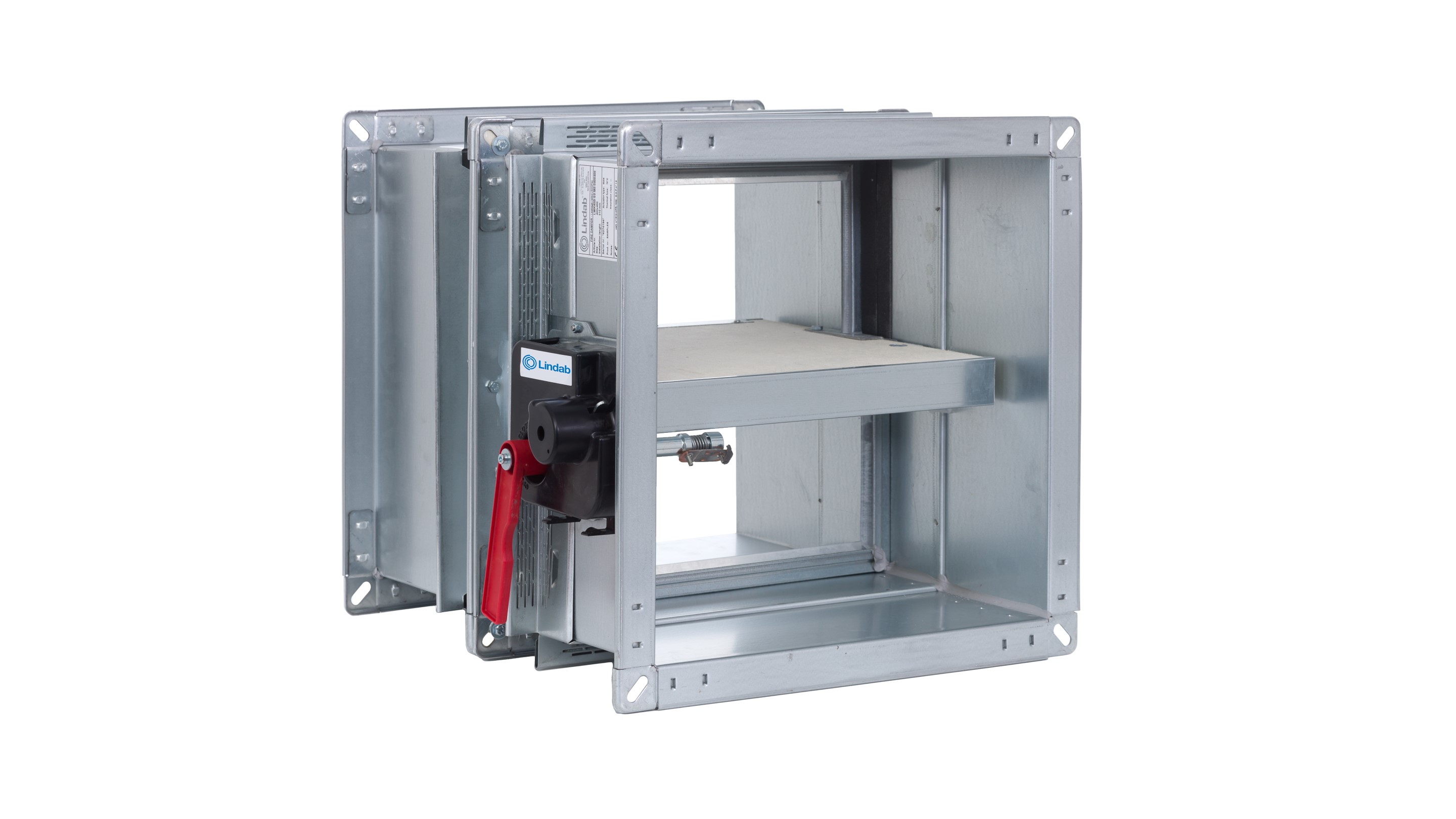 Rectangular fire damper for air duct system that penetrate fire resistance walls or floors. With 40 mm thick closing blade made from refractory material. Casing leakage performance class C according to Standard EN1751:2014 section C.3.