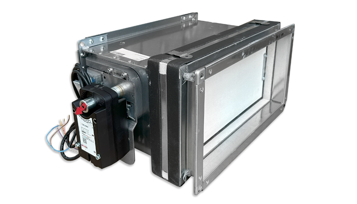 Rectangular fire damper for air duct system that penetrate fire resistance walls or floors. With 25 mm thick closing blademade from refractory material. Casing leakage performance class C according to Standard EN1751:2014 section C.3.