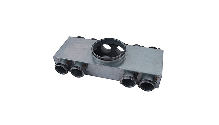 The manifold can be used for both supply and exhaust air. It is available in several types and dimensions. All types have Ø 63 or Ø 80 mm studs with Lindab Safe sealings for connections of SR spiral-seamed ducts or semiflexible ducts LFPE. Use the transition piece RCFU, with integrated Smart Lock function, to connect the LFPE 76/90-dimension to InDomo manifolds and plenum boxes. The manifolds are designed for floor installation but can be used everywhere, also in the ceiling for example.