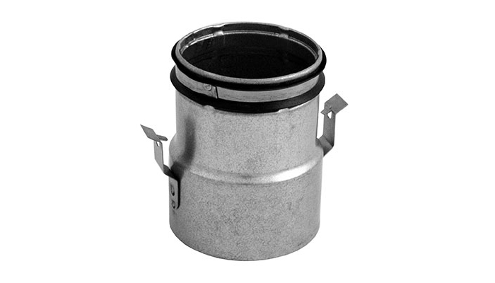 Transition piece used when connecting semiflexible duct LFPE 76/90 to manifolds and plenum boxes. Is supplied with a clip to hold the semiflexible duct – The Smart lock function.