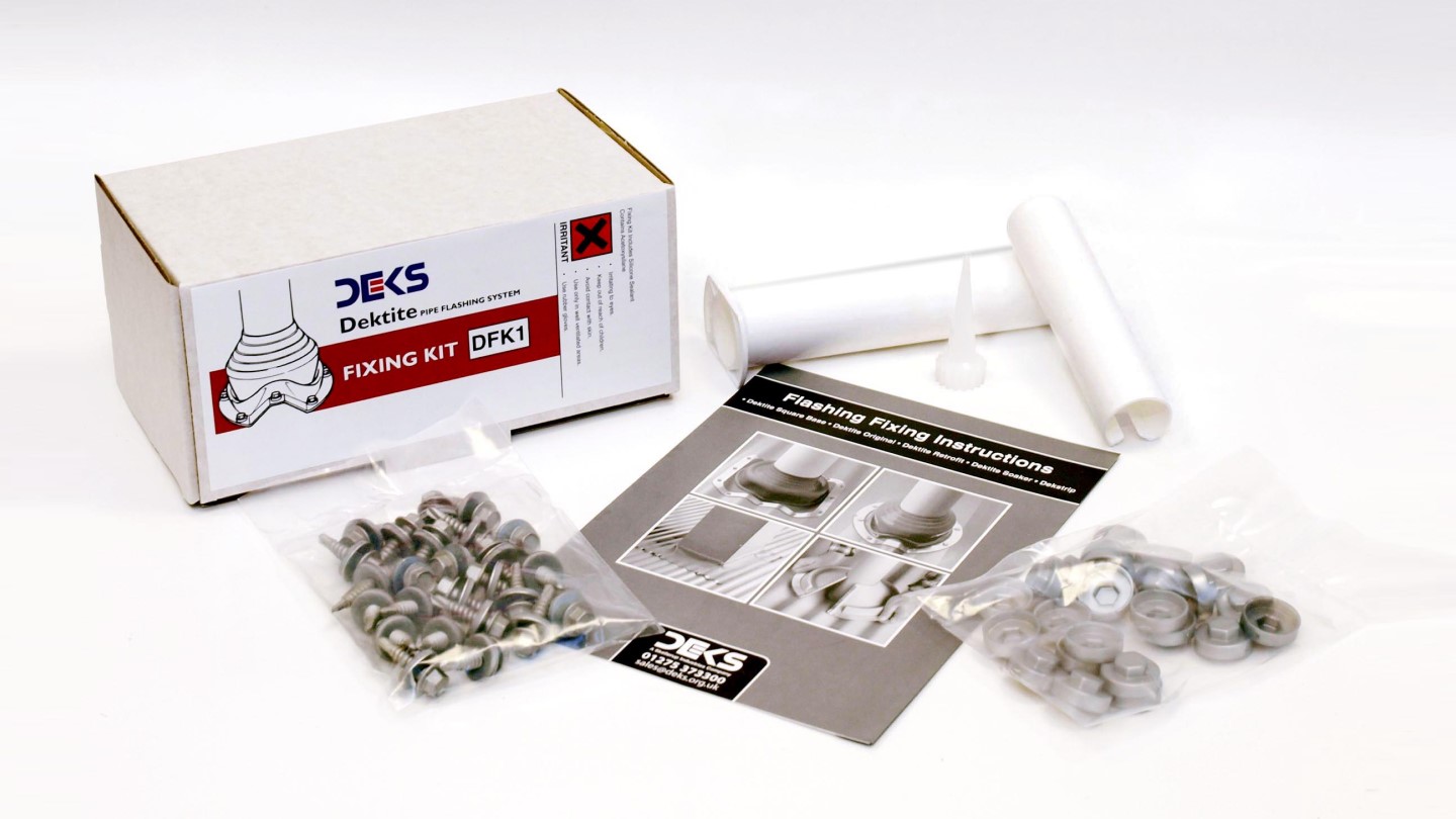 Dektite fixing kits are designed for use with Deks EPDM and silicone flashings on metal and fibre cement roofs.
