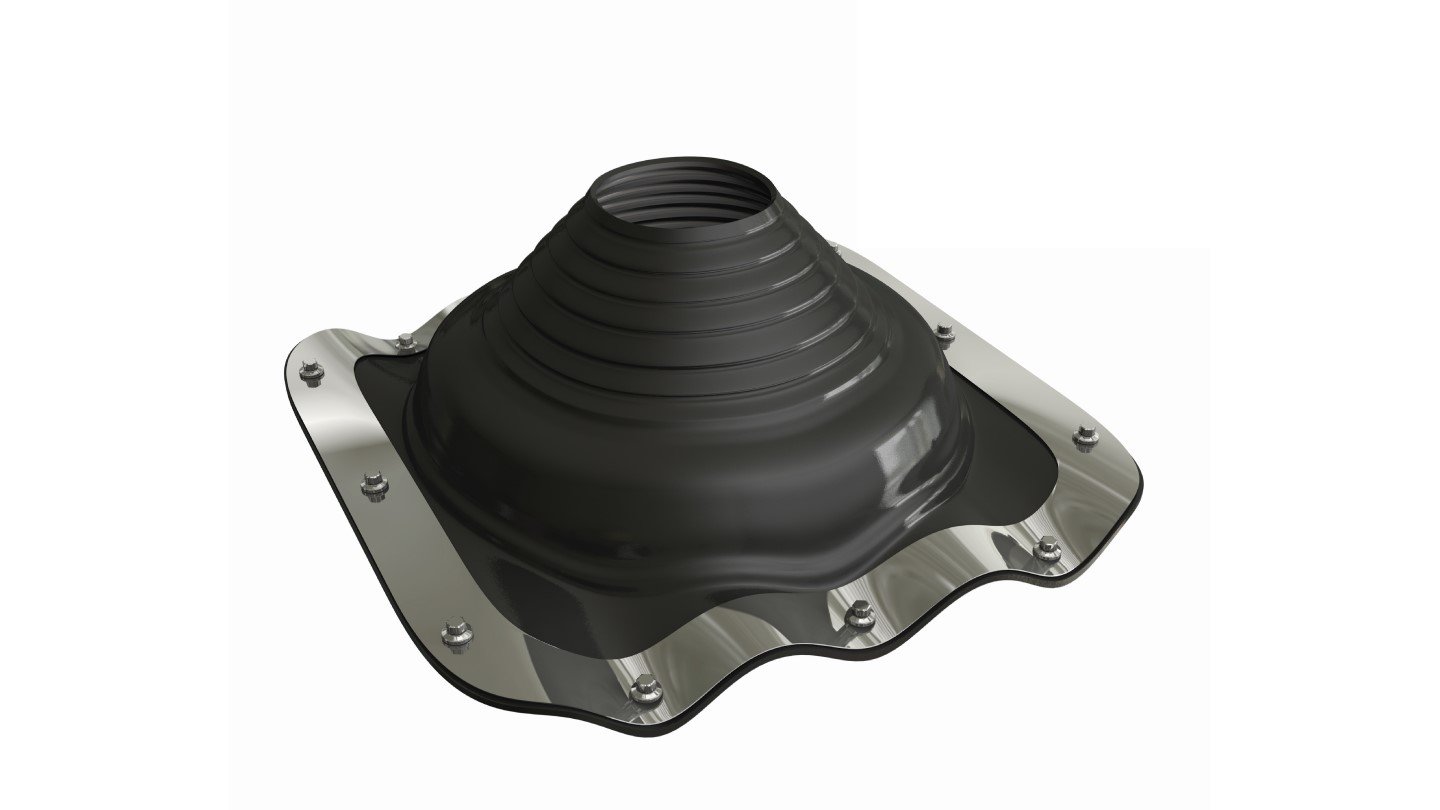Pleated skirt adjusts to any roof pitch for stress-free connections.