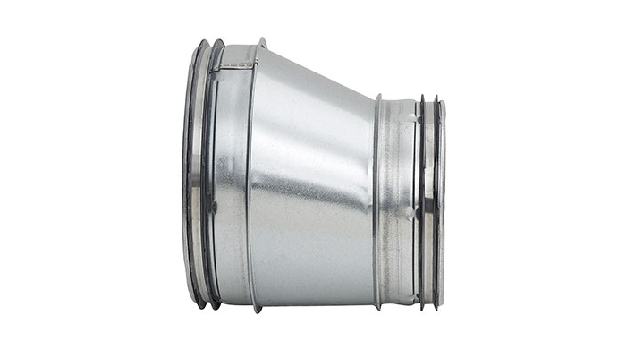Long, tangential, hand made reducer with approx. 35° angle.