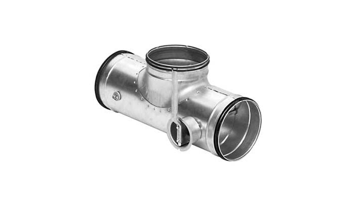 Can be used for "by pass" ducts. It thereby replaces two conventional dampers + two couplings + one T-piece and is 20–30% shorter.