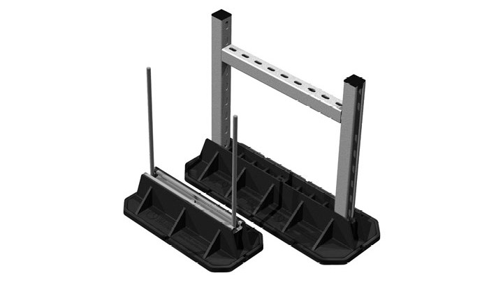 The Big Foot Systems Multi Foot offers a flexible and adaptable multi-purpose solution for ancillaries support including duct, pipe and cable tray. Versatile application which can take a full range of strut, channel or threaded rod. Rubber crumb foot mats to provide additional roof protection. An off the shelf boxed kit. Perfect for supporting pipes, ducts and cable tray of any size and length. Recommended spacing of 1m (39 3/8in) between feet. Ideal for use in wind protected environments. Strut, channel or threaded rod not included with Multi Foot.