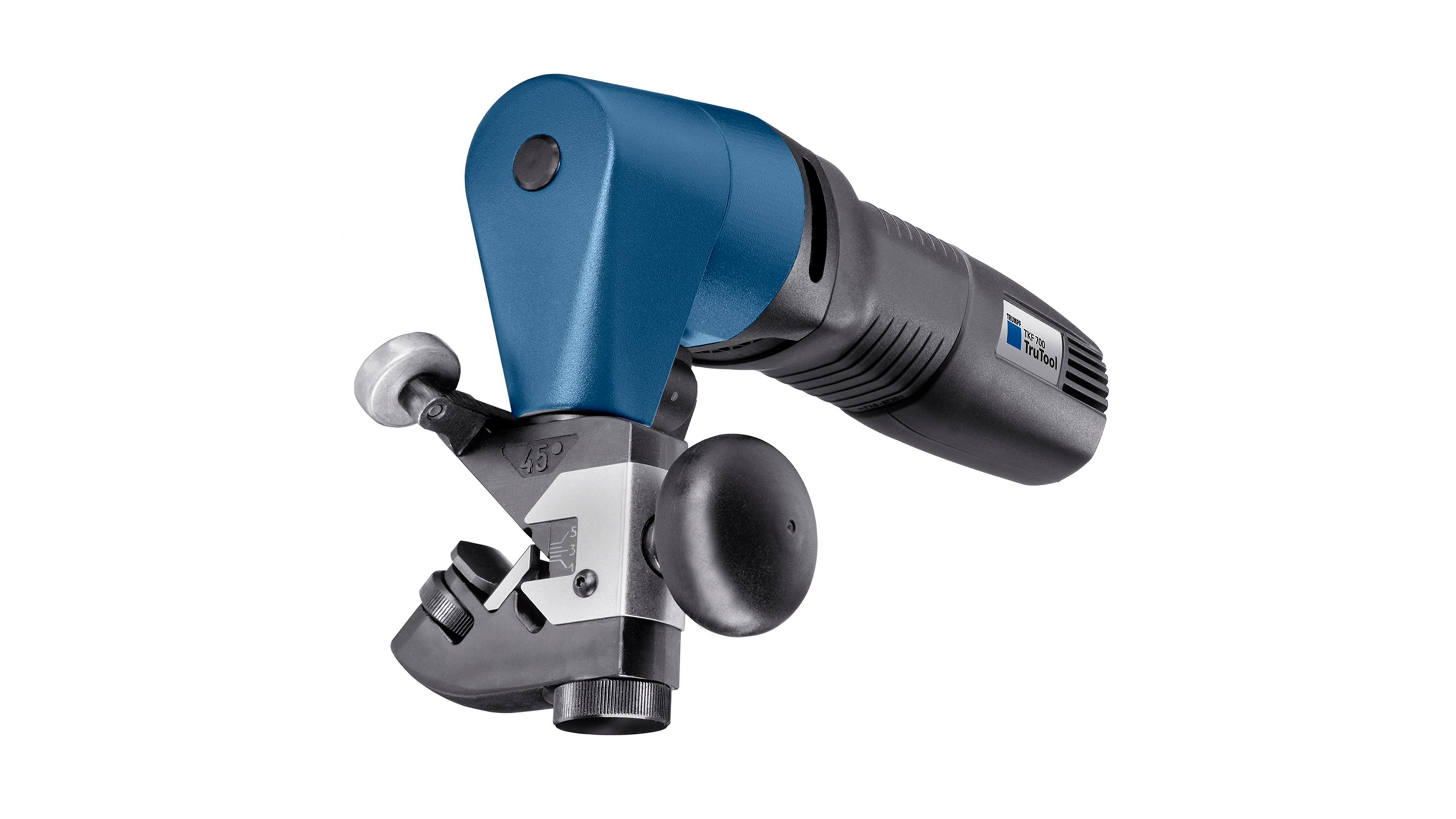 With the TruTool TKF 700, you can achieve chamfer lengths of up to 7 mm on straight sheets as well as on tubes. The quick-adjustment mechanism makes it easy to change the carrier and cutting direction. The TruTool TKF 700 is the lightest model in its class. The machine can be easily guided manually in a vertical, horizontal or upside-down position, or can be used stationary in a work station. The round handle ensures comfortable operation.