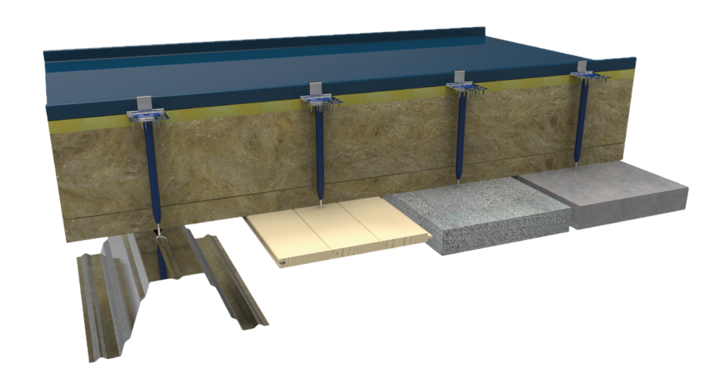 Fixed or sliding Krabban clips are ideal for use on insulated roofs with telescopic sleeves which provide the required compression of the insulation without risk of damage to the sheet metal.