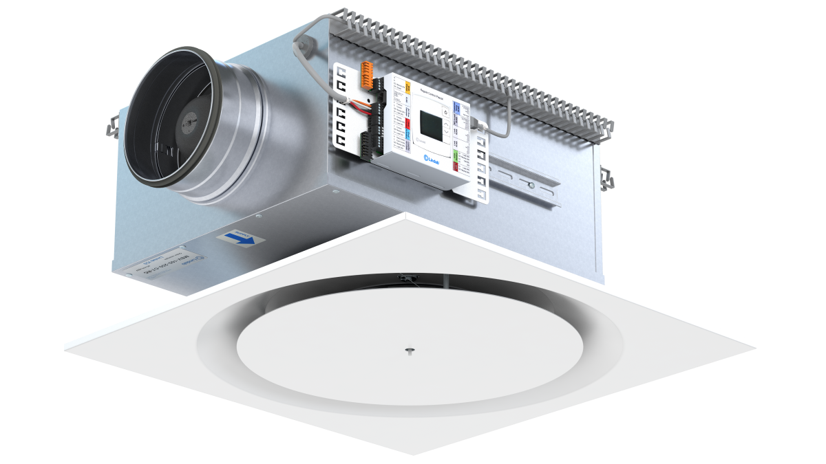 Lindab DCV ONE – a complete room supply unit. By collecting several components in one unit, we assure lower installation cost and time. You get a more flexible and long-lasting ventilation setup. With DCV ONE you get a VAV plenum box, integrated room controller, diffuser with integrated sensor and is pre-wired from the factory.