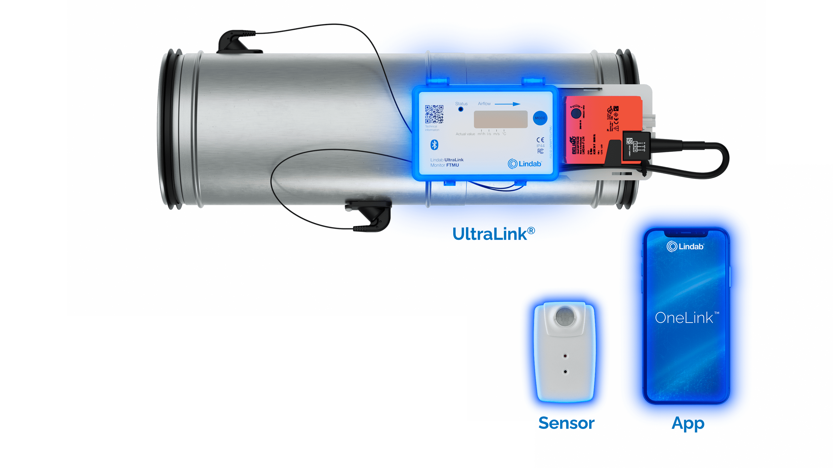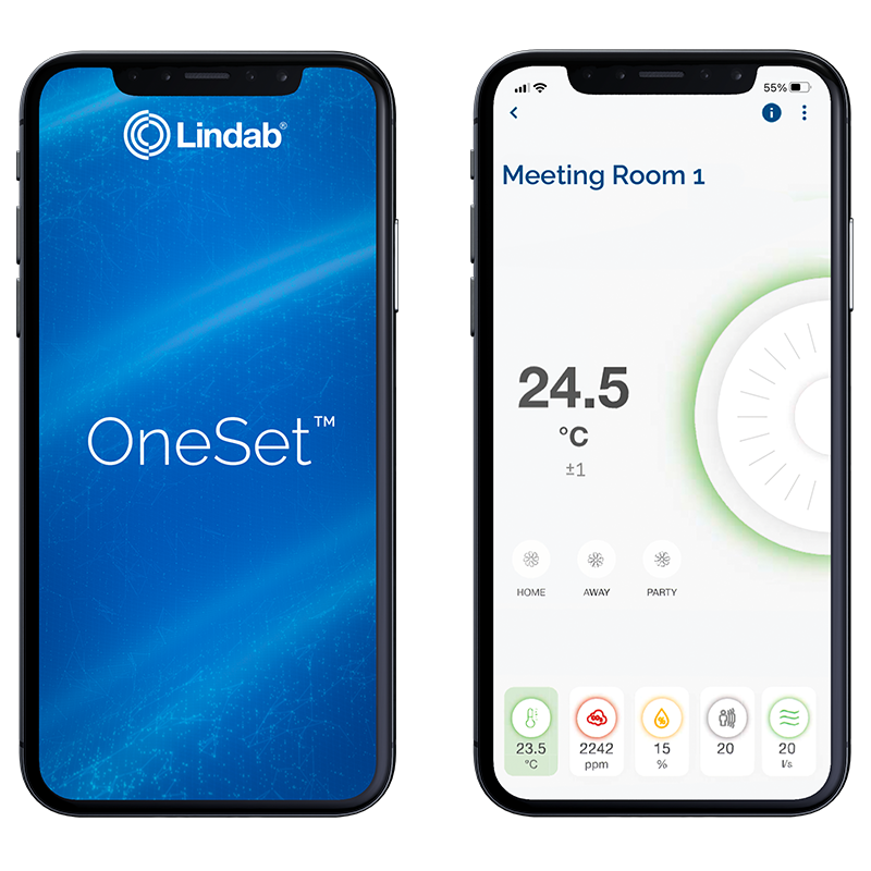 The UltraLink Demand Controlled Ventilation regulator, Bluetooth sensors and Lindab apps on your phone give you the ability to set up, monitor, and reset up to five different sensors in each of your rooms. That way, you can control everything from CO2 levels, airflow, humidity, presence and temperature with a few clicks.
