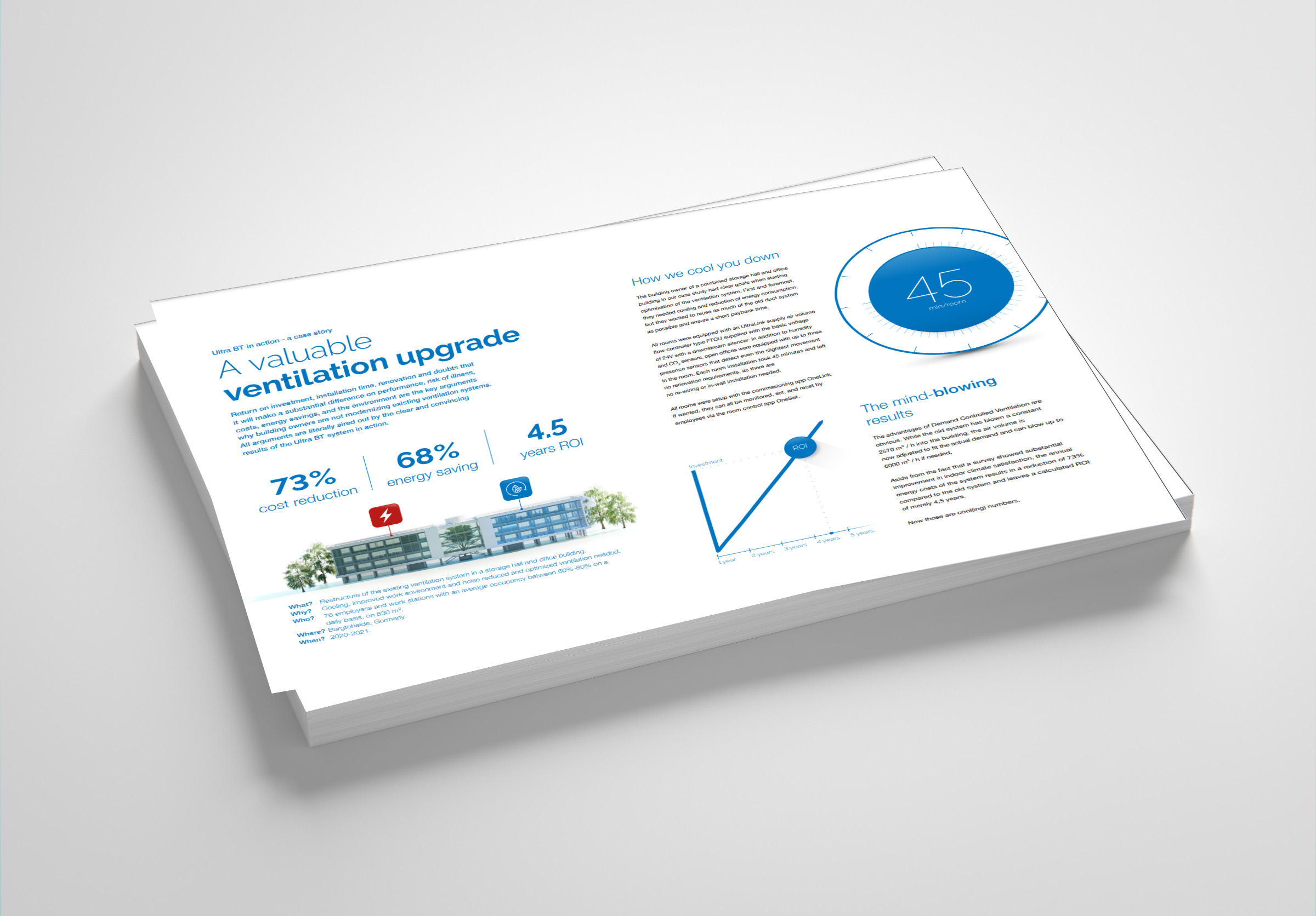 Ultra BT makes the upgrade of the ventilation system easy. It can be installed in one room at a time, with minimal impact on the building. No reconstruction of walls, no shut down of the office. Ultra BT is installed in existing ducts and everything is connected via Bluetooth. No wires required.