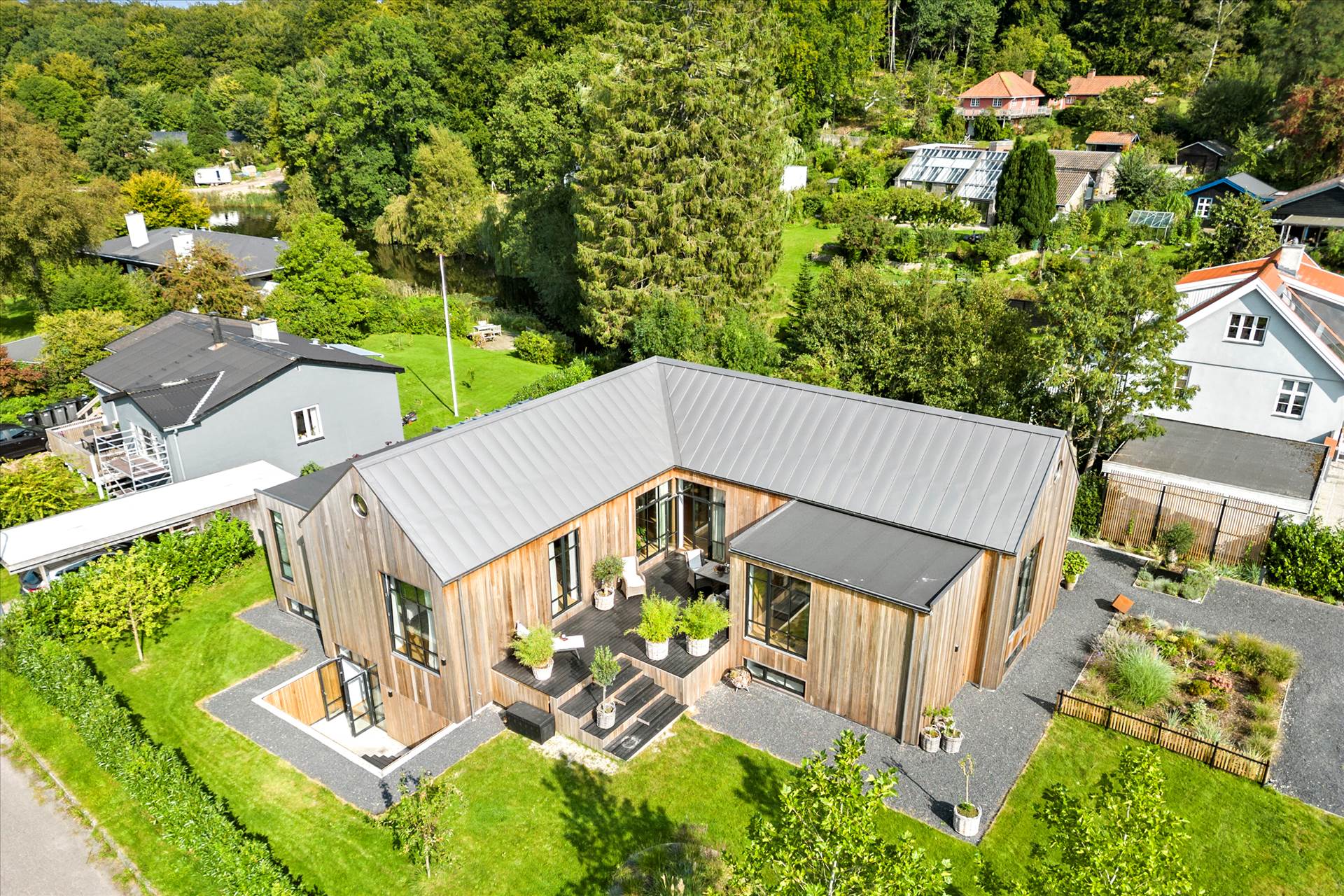 When the Lindab team in Denmark began dialogue with the client about his roofing requirement, they agreed on the solutions which would be best for the project. This required lots of expertise to solve, especially for flashings, gable and stern solutions, as the house has a unique architectural design with many transitions and different building sections, says Lene Agger, Lindab Development Engineer.