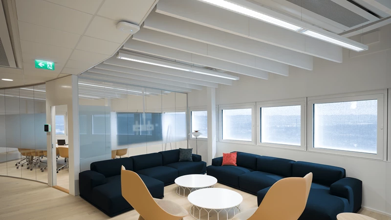 Lindab Solus moves energy from cooled to heated rooms, mixing and recirculating the temperate water instead of constantly cooling or heating it as in traditional systems.