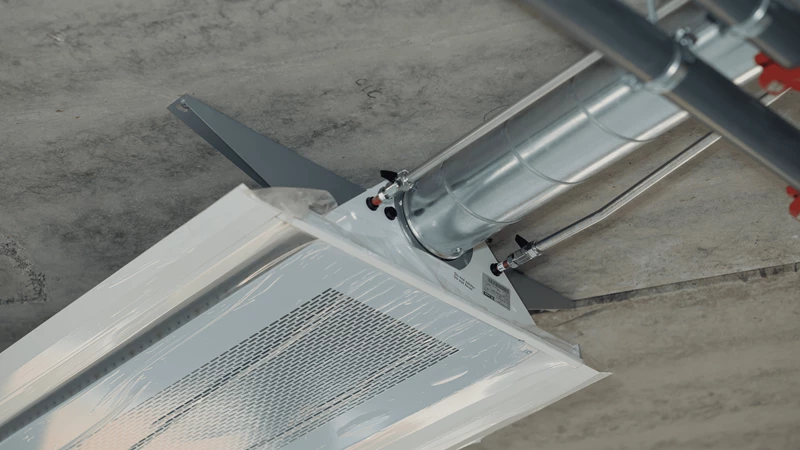 A distinctive feature of Solus is that the beam completely lacks moving parts – no valves, no actuators, no steering, no room sensors. The water flow and air flow are consistant in all beams and the entire indoor climate system is regulated, in addition, any spiking with local heating or local cooling is regulated by the room control system.
