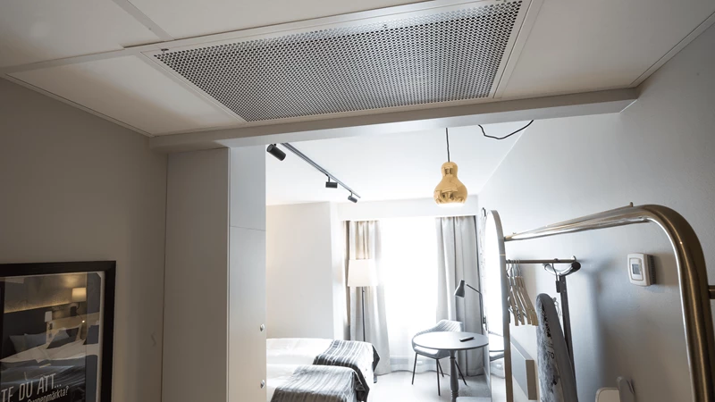 The hotel now has ceiling-mounted Lindab Munio chilled beamss and cooling via localised cooling as well as conventional space heating through radiators. The entire indoor climate is controlled centrally from a technical room behind the reception and provides exactly the opportunities for climate comfort and adaptation that they want to offer their guests. With the system, Scandic Crown can control the temperature in each individual room and adapt the indoor climate to the guest's wishes.