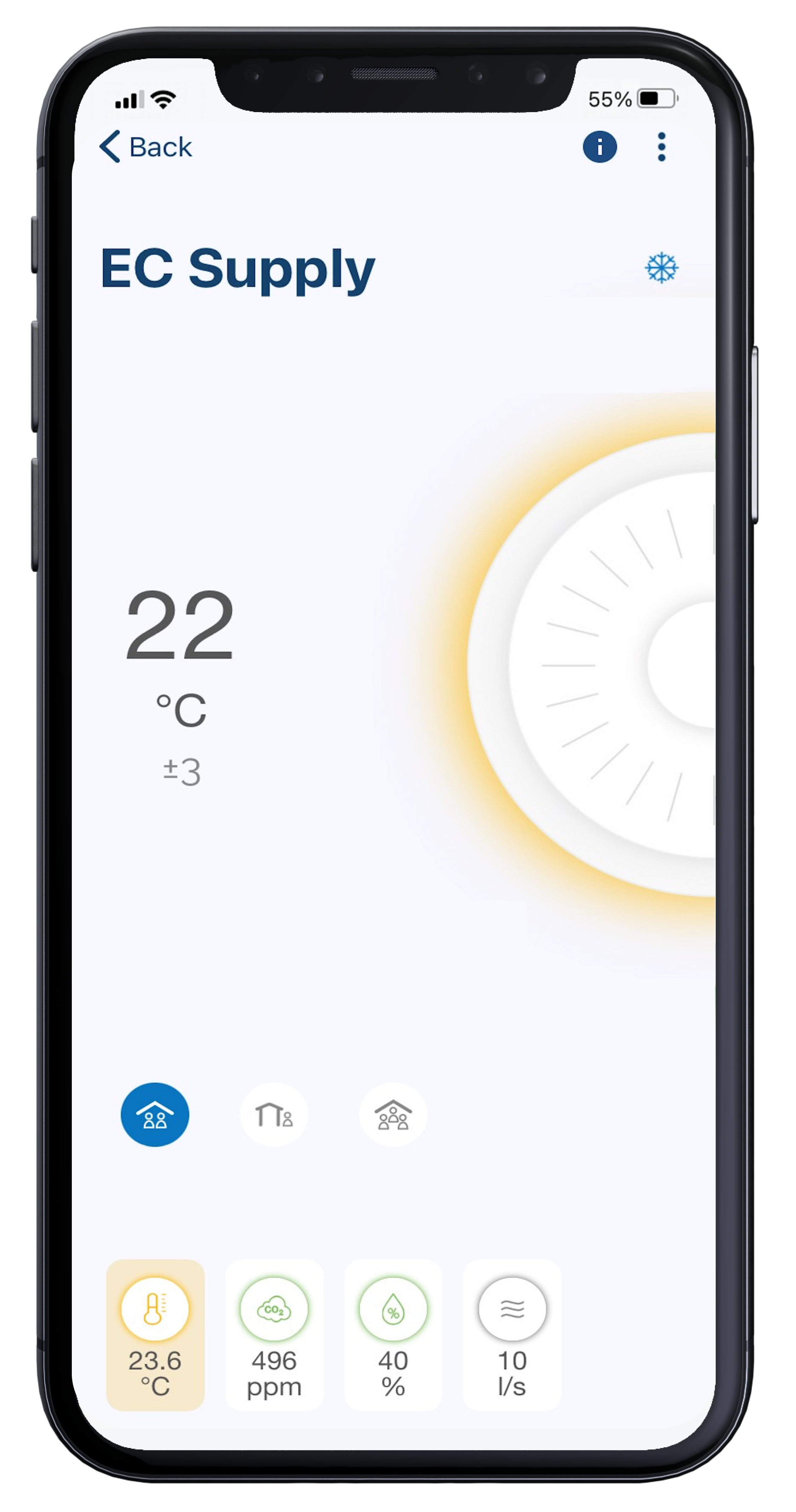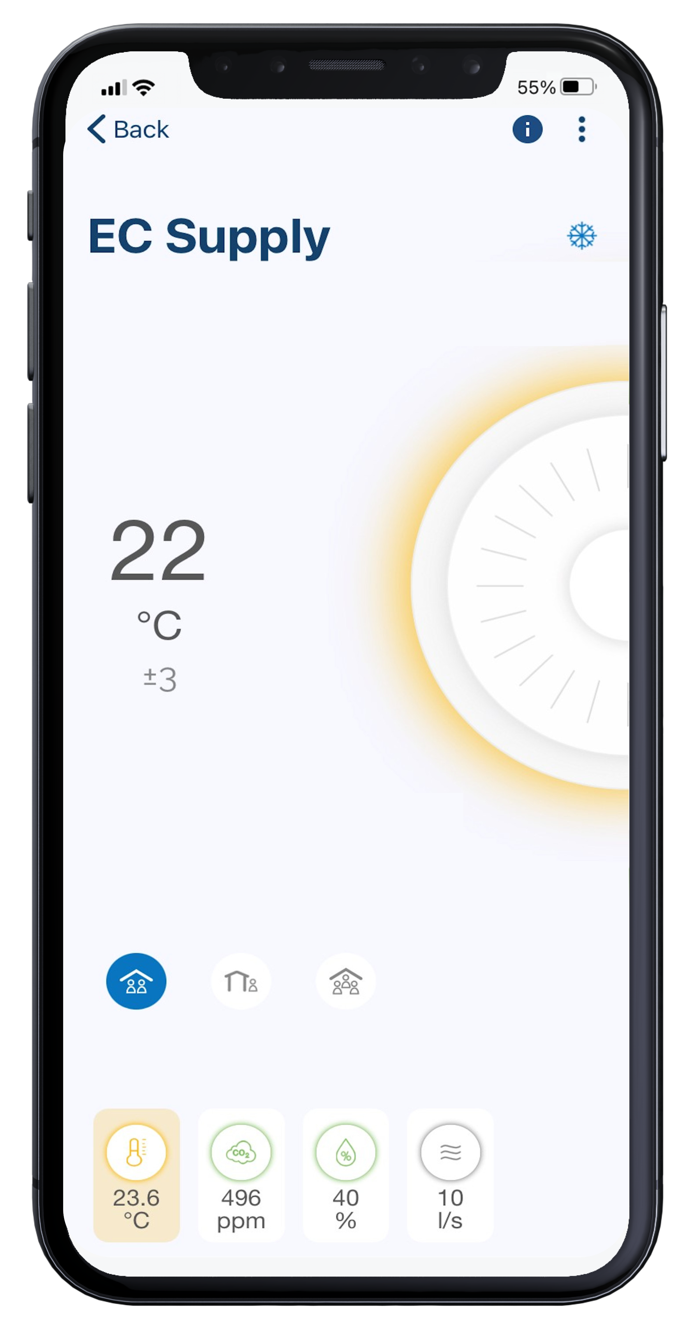 Lindab OneSet enables remote and simple access to the Lindab air flow products. It enables the end-user to regulate products according to specific needs. The app connects via Bluetooth to the product installed in ventilation ducts.