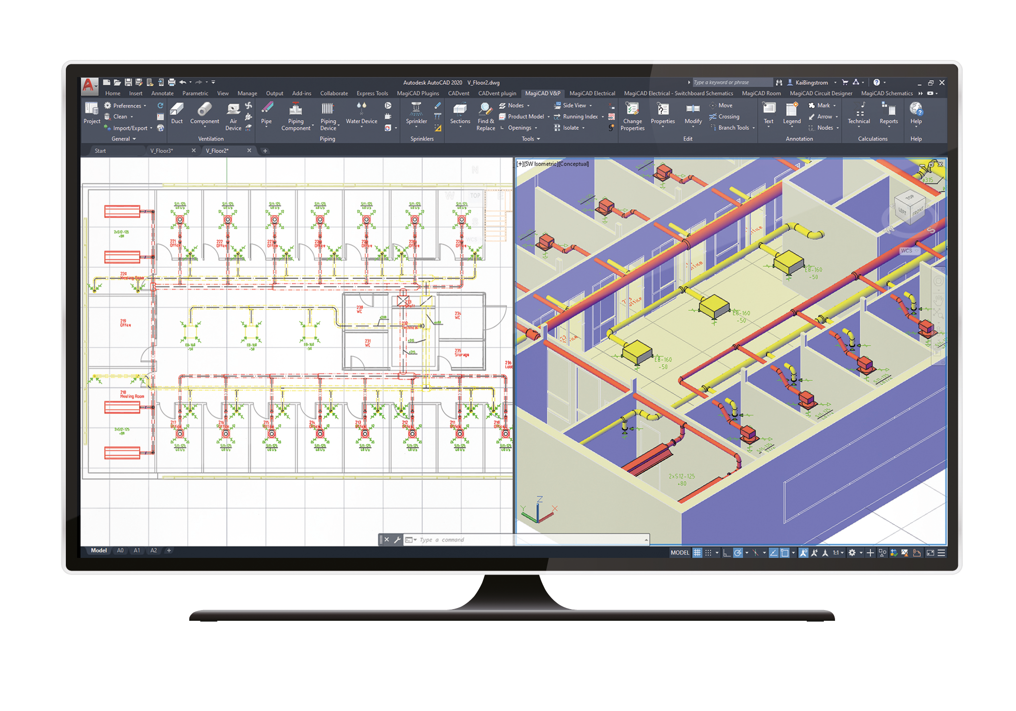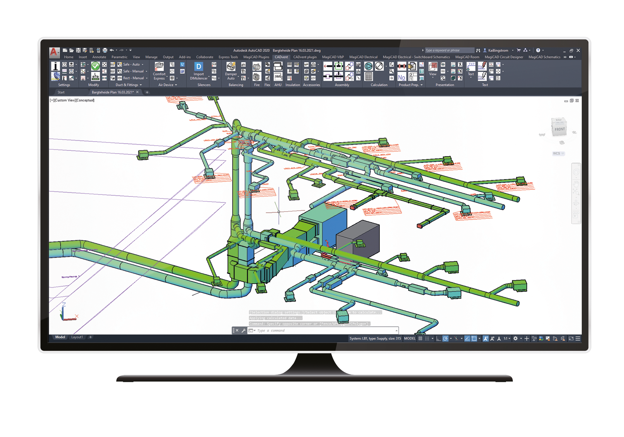 CADvent is a ventilation design application for AutoCAD. This software helps to simplify drafting and documenting a complete ventilation system. Modeling air duct systems is fast and the built-in analysis in CADvent can further optimise the design.