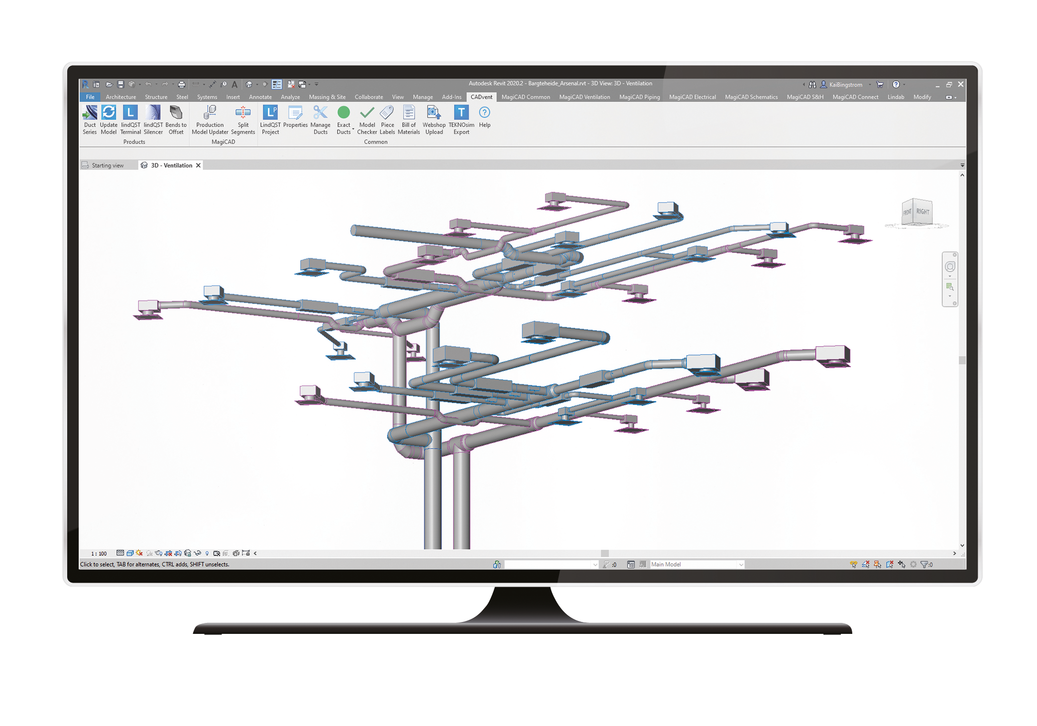 CADvent plugin for AutoCAD is a toolbox with several very helpful features for ventilation designers and contractors. Users can create rooms with property requirements and upload these to LindQST. Moreover for those who also have MagiCAD installed there is a wider choice of functions available.