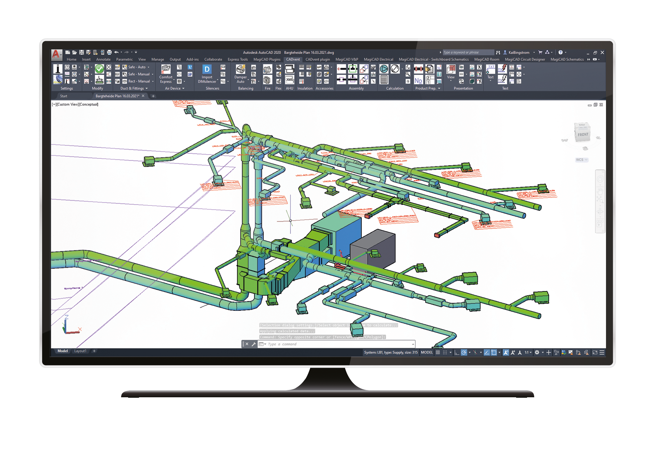 CADvent is a ventilation design application for AutoCAD. This software helps to simplify drafting and documenting a complete ventilation system. Modeling air duct systems is fast and the built-in analysis in CADvent can further optimise the design.